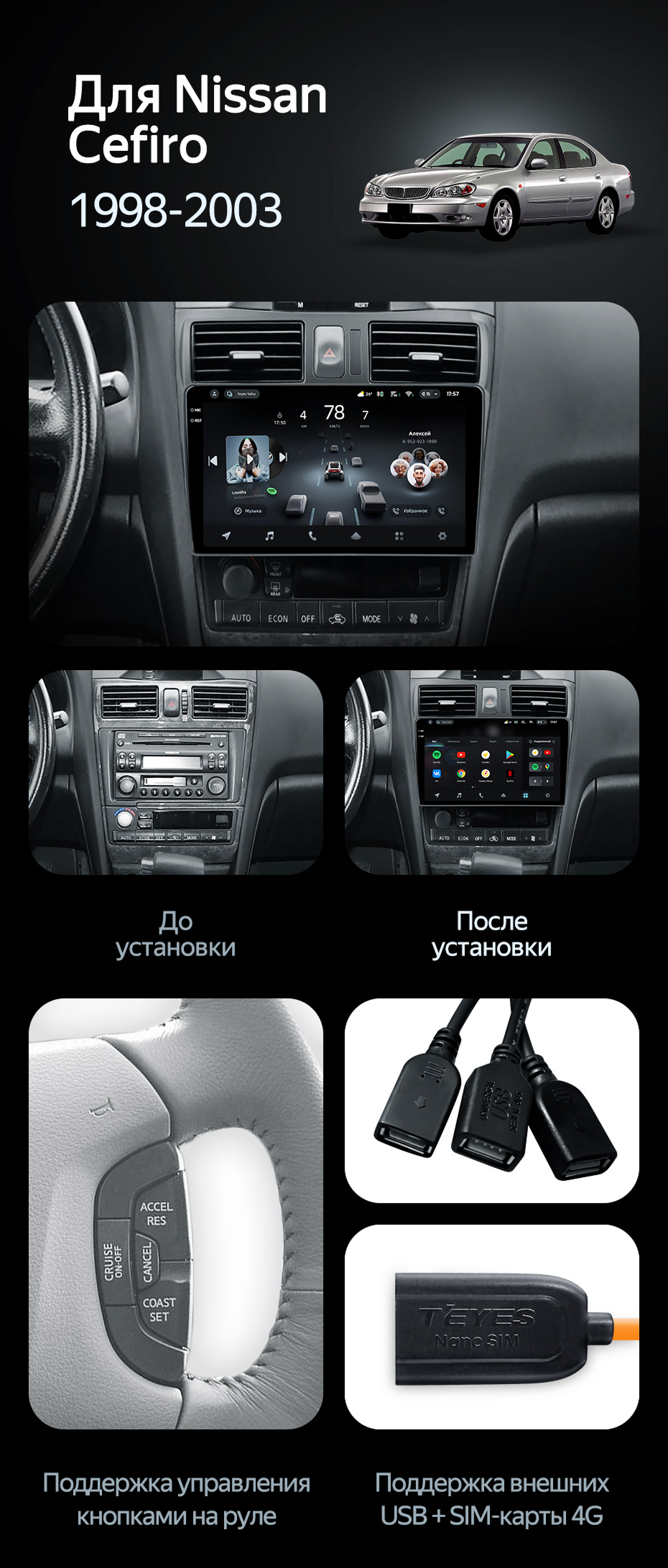 Переходная рамка Nissan Cefiro 3 A33 (1998-2003) F2 (9") - купить всего за 3 600 руб. в интернет-магазине в Мытищах Teyes.com.ru. ✓ Самый лучший выбор мультимедиа ✓ Лучшая замена штатному ГУ ✓ Тел. +7 (800) 775-31-74