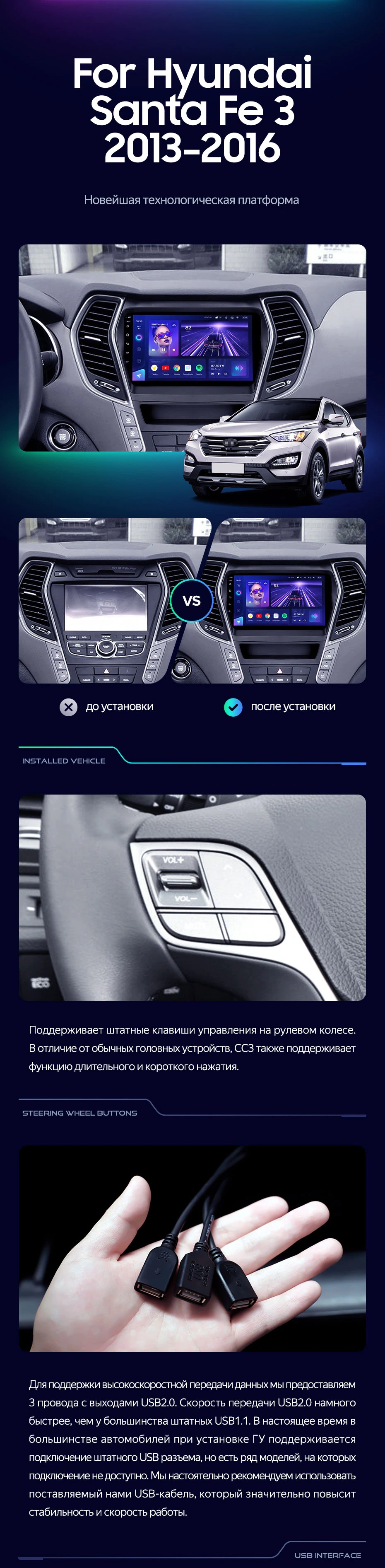 Штатная магнитола Teyes CC3L 4/32 Hyundai Santa Fe 3 (2013-2016) Тип-B - купить всего за 29 500 руб. в интернет-магазине в Мытищах Teyes.com.ru. ✓ Самый лучший выбор мультимедиа ✓ Лучшая замена штатному ГУ ✓ Тел. +7 (800) 775-31-74