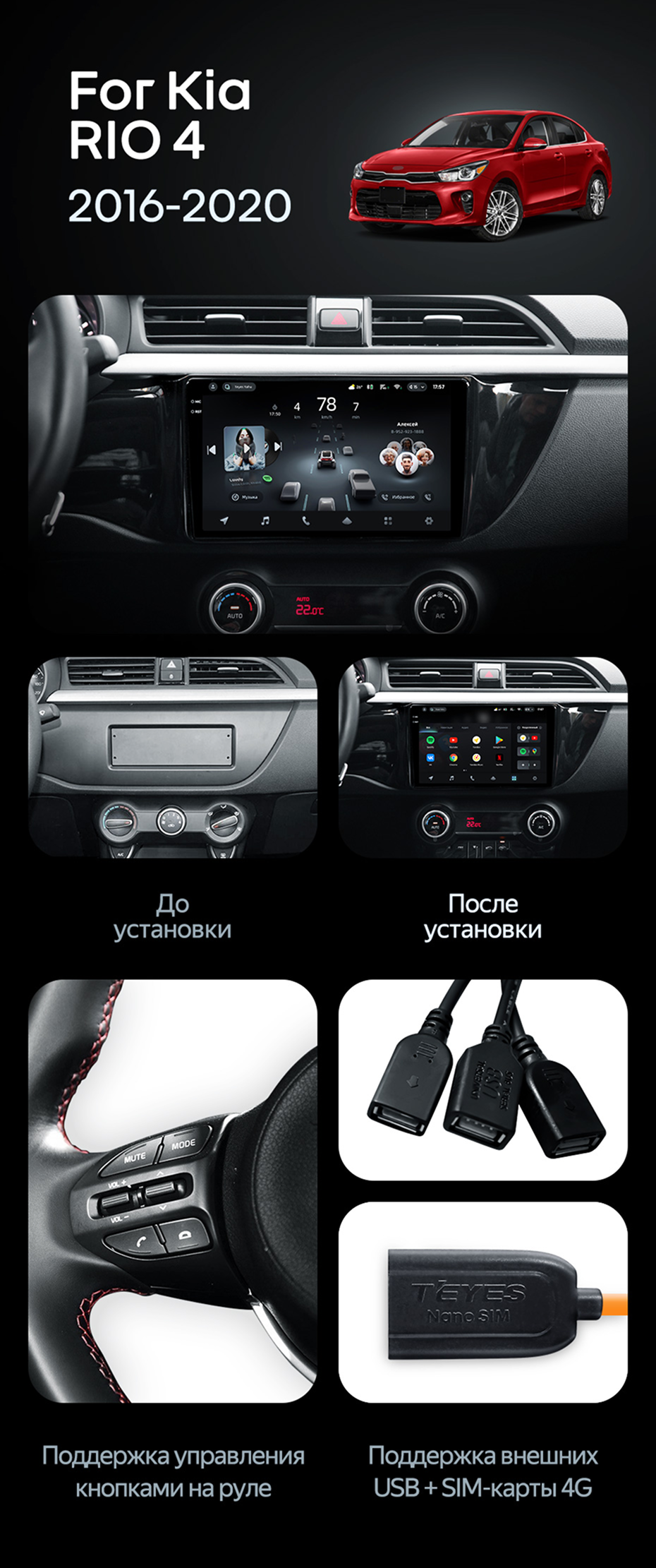 Штатная магнитола Teyes CC4 8/128 Kia Rio 4 (2016-2020) Тип-B - купить всего за 47 640 руб. в интернет-магазине в Мытищах Teyes.com.ru. ✓ Самый лучший выбор мультимедиа ✓ Лучшая замена штатному ГУ ✓ Тел. +7 (800) 775-31-74