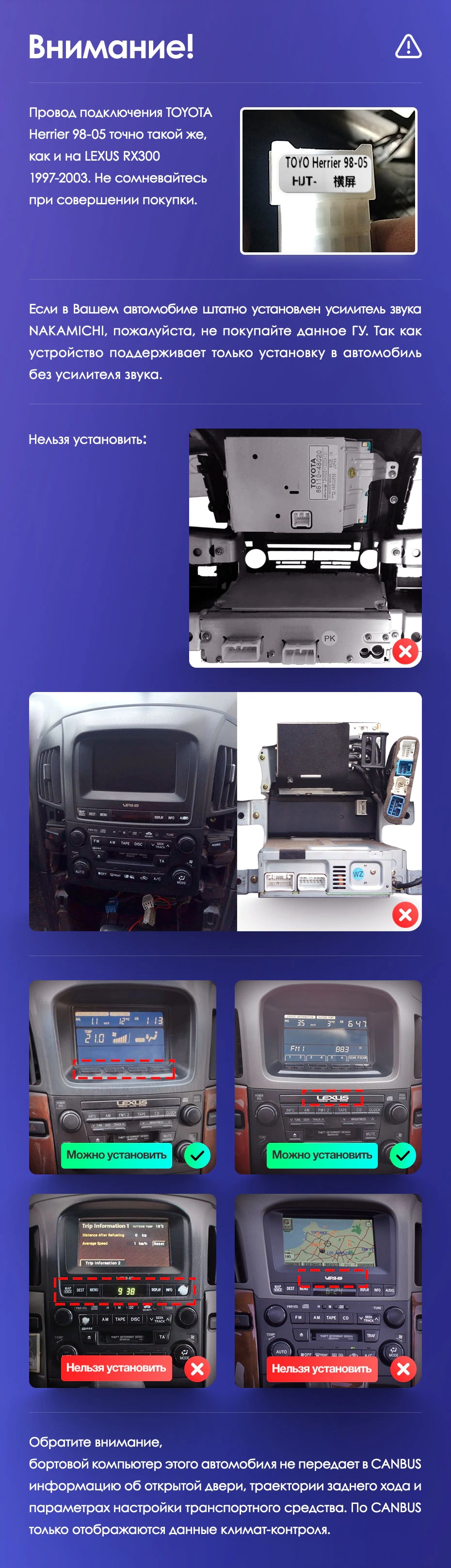 Полный комплект установки магнитолы Teyes с рамкой и проводкой можно выбрать в каталоге штатных магнитол Lexus RX300 XU10 (1997-2003).
