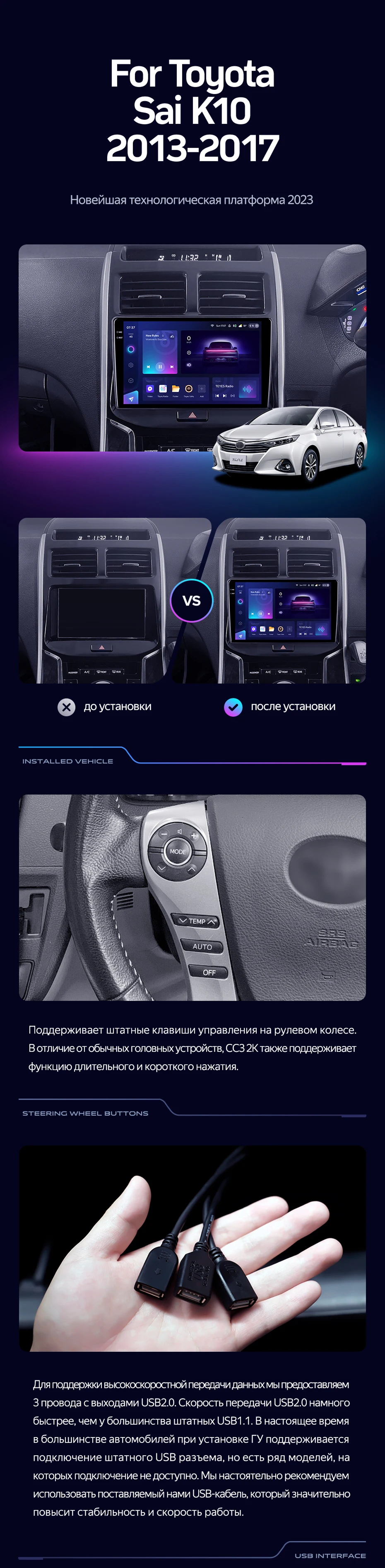 Переходная рамка Toyota Sai K10 (2013-2017) (9") - купить всего за 7 400 руб. в интернет-магазине в Мытищах Teyes.com.ru. ✓ Самый лучший выбор мультимедиа ✓ Лучшая замена штатному ГУ ✓ Тел. +7 (800) 775-31-74